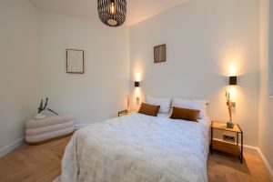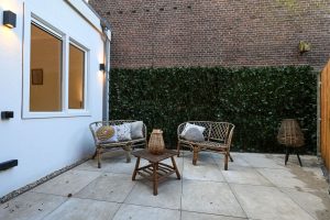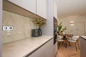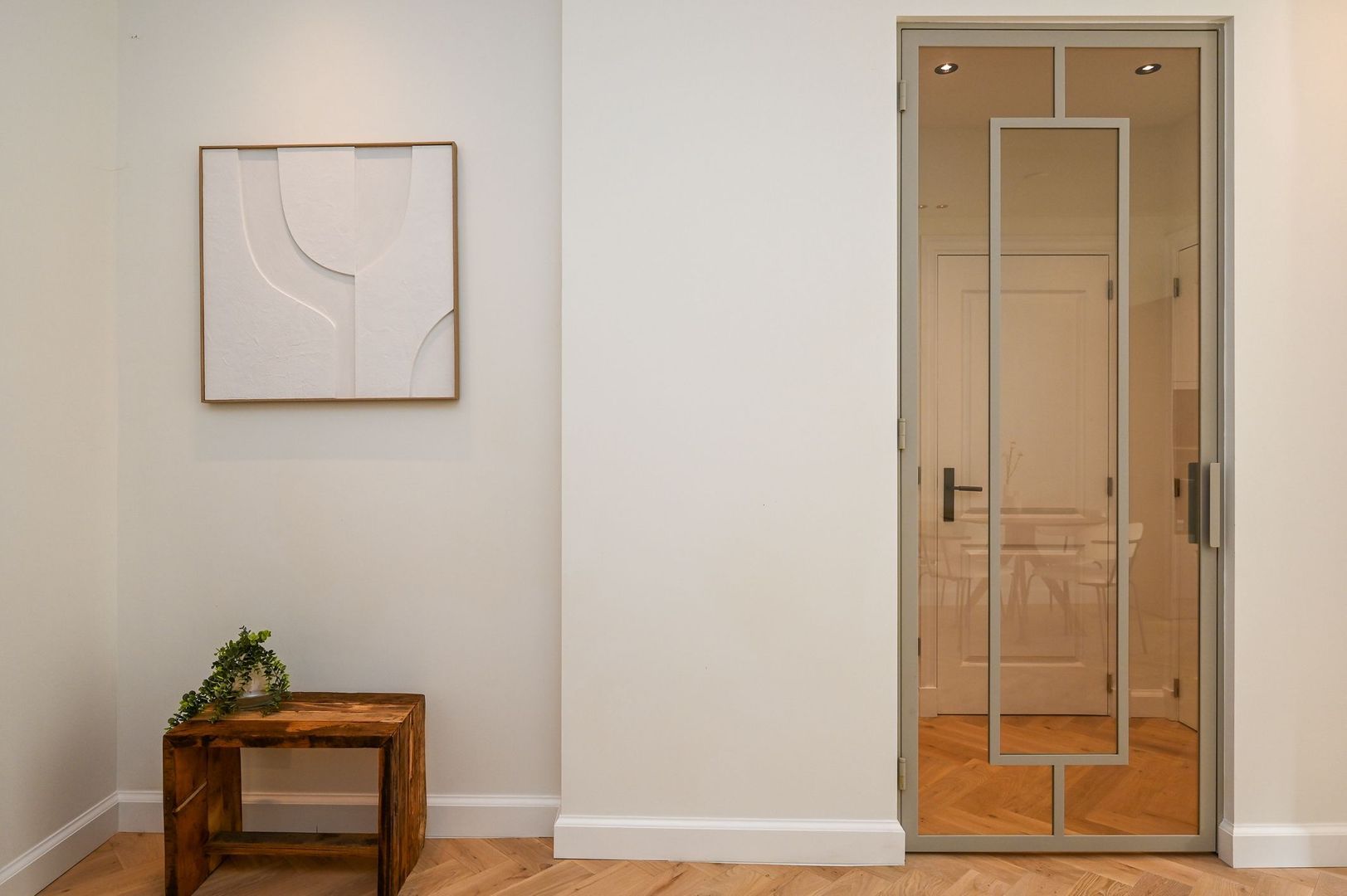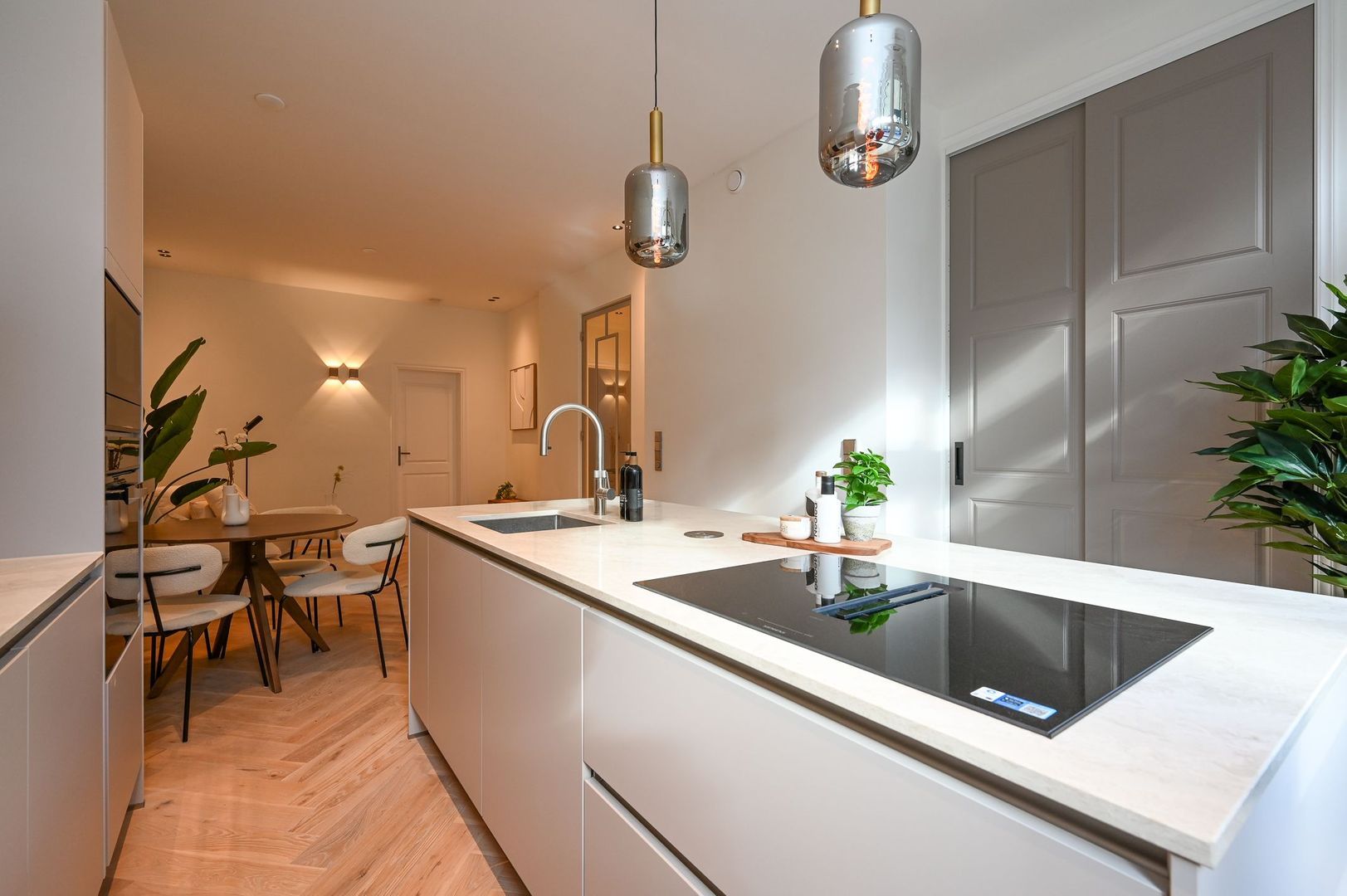 Dit appartement is voorzien van o.a. vloerverwarming, een beige stalen kozijn naar woon/eetkamer met open keuken voorzien van o.a. RVS Quooker en Siemens inbouw apparatuur, 2 goede slaapkamers en een achtertuin. Door de gehele woning ligt vloerverwarming en een houten visgraat vloer, de sfeervol samengestelde badkamer/toilet zijn voorzien van luxe sanitair, inloopdouche en badkamermeubel met RVS inbouwkranen, vloerverwarming en een verlichte spiegel. Verder wordt er door de woning veelvoudig met inbouwspots en wandverlichting gewerkt voor de juiste sfeer belichting.